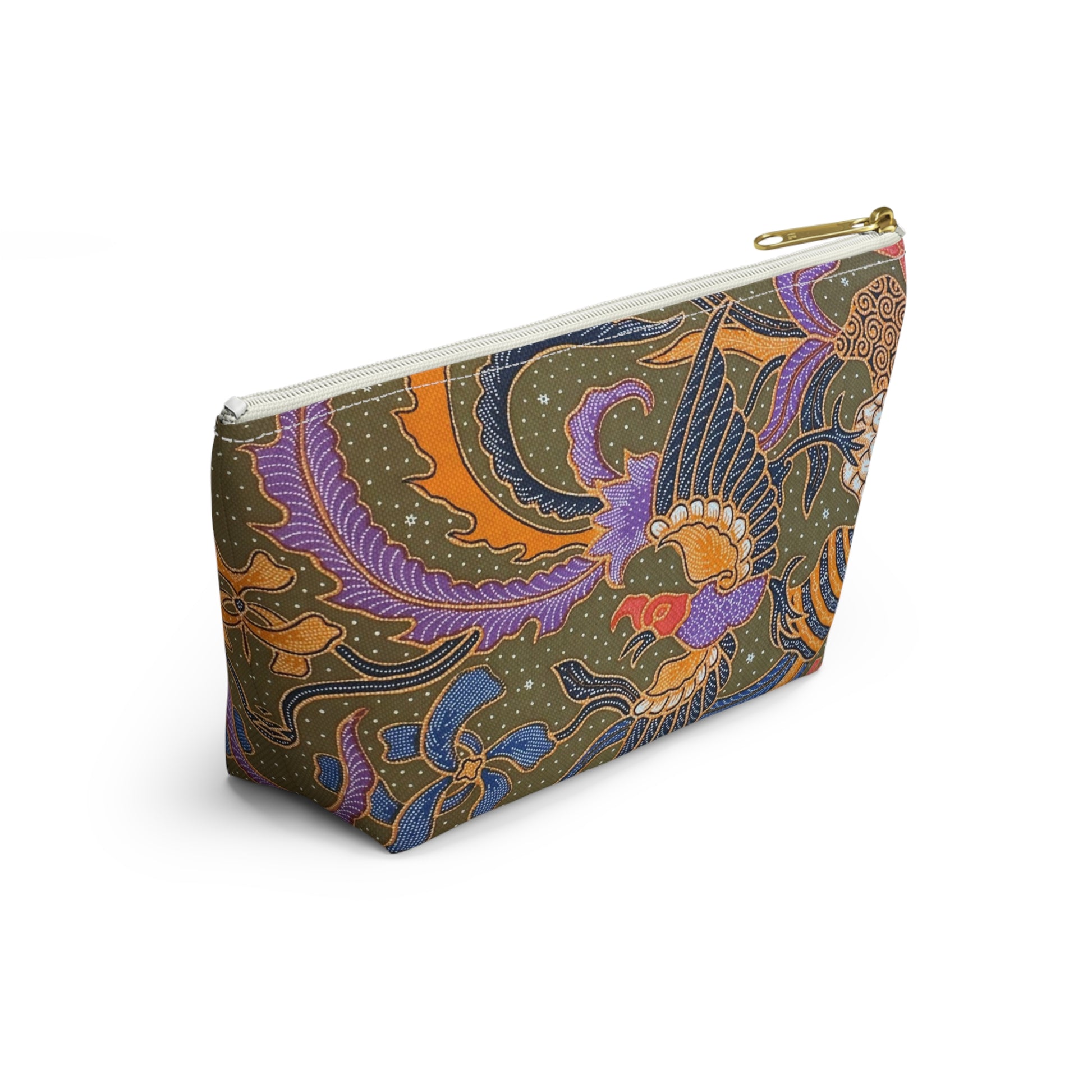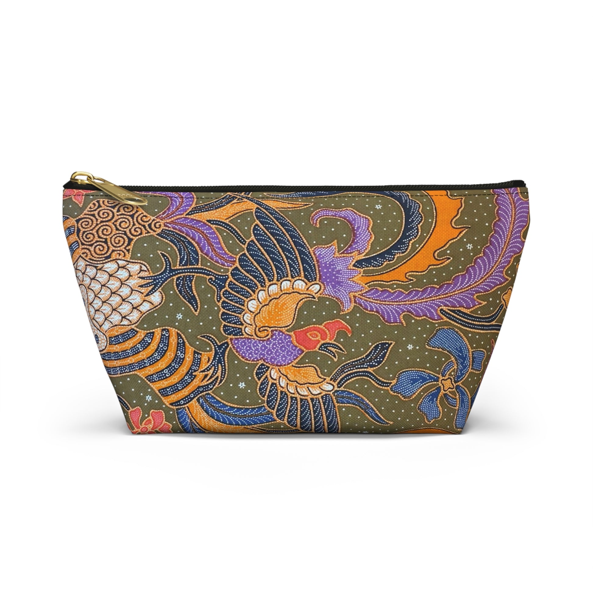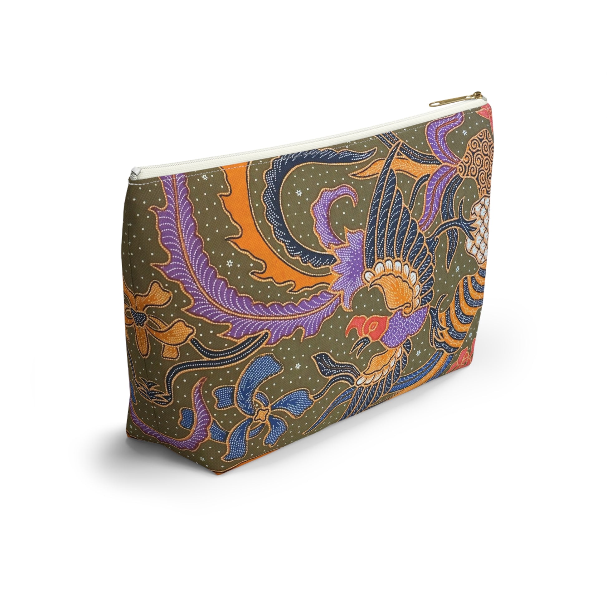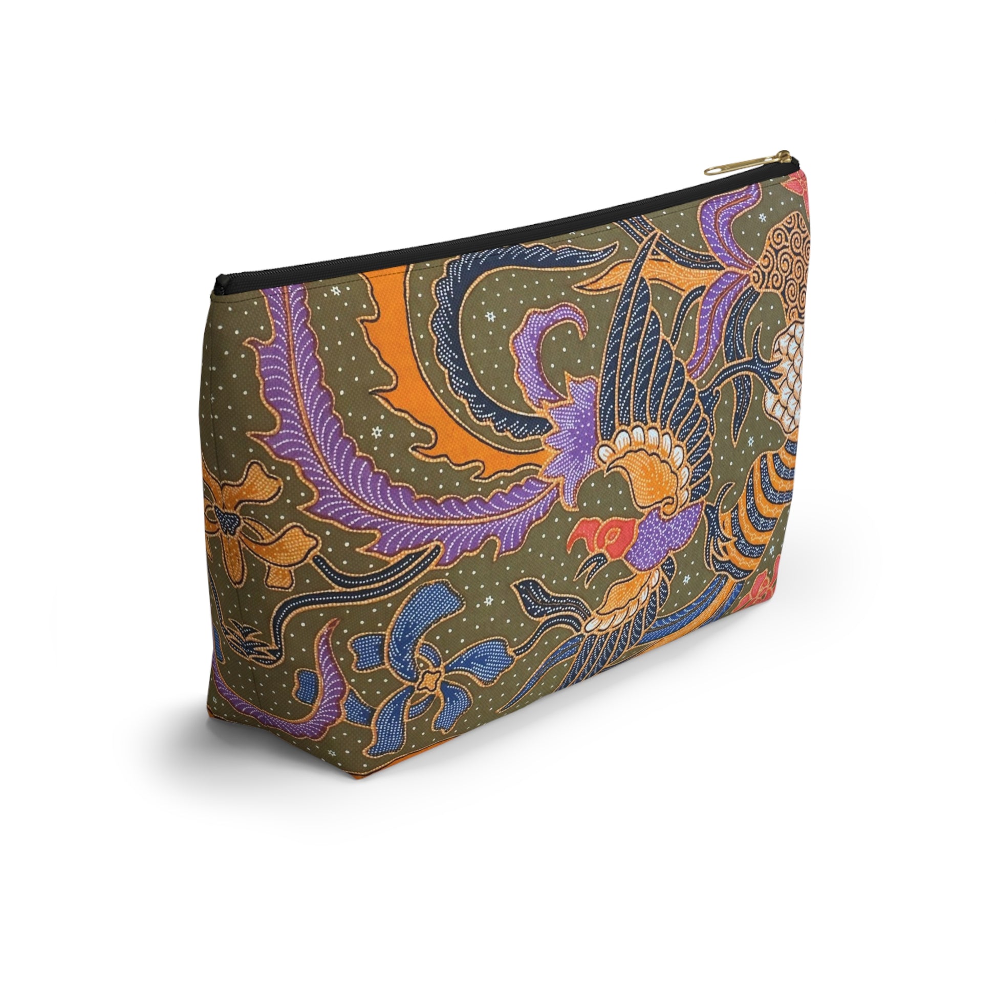 Cosmetic travel bag can be used for pretty much anything. They also make excellent pencil cases. They are constructed from 100% polyester with a zipper closure. Comes with a white or black zipper. Note: this is printed batik.
