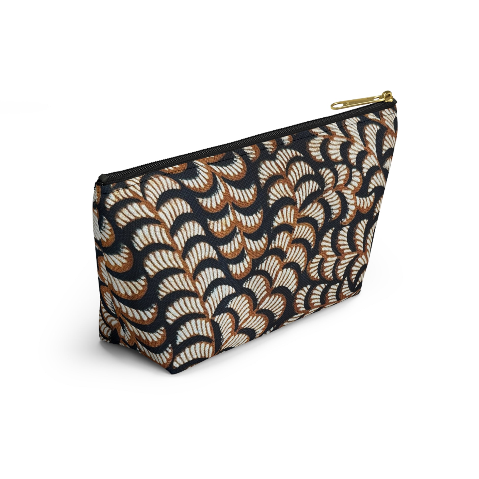 Cosmetic travel bag can be used for pretty much anything. They also make excellent pencil cases. They are constructed from 100% polyester with a zipper closure. Comes with a white or black zipper. Note: this is printed batik.