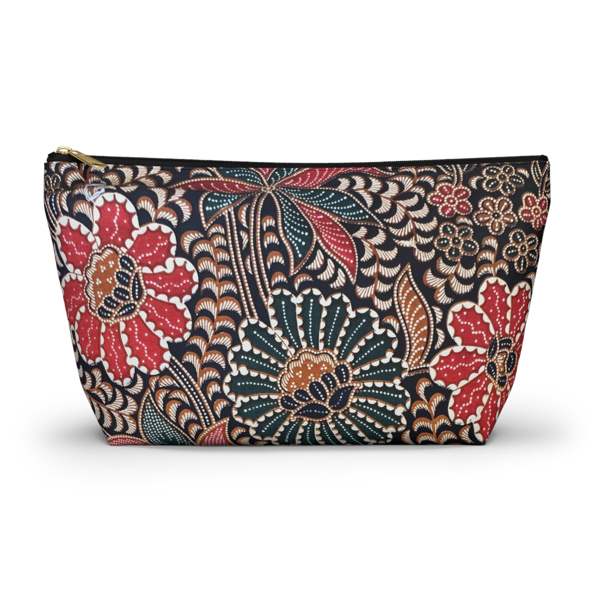 Cosmetic travel bag can be used for pretty much anything. They also make excellent pencil cases. They are constructed from 100% polyester with a zipper closure. Comes with a white or black zipper. Note: this is printed batik.