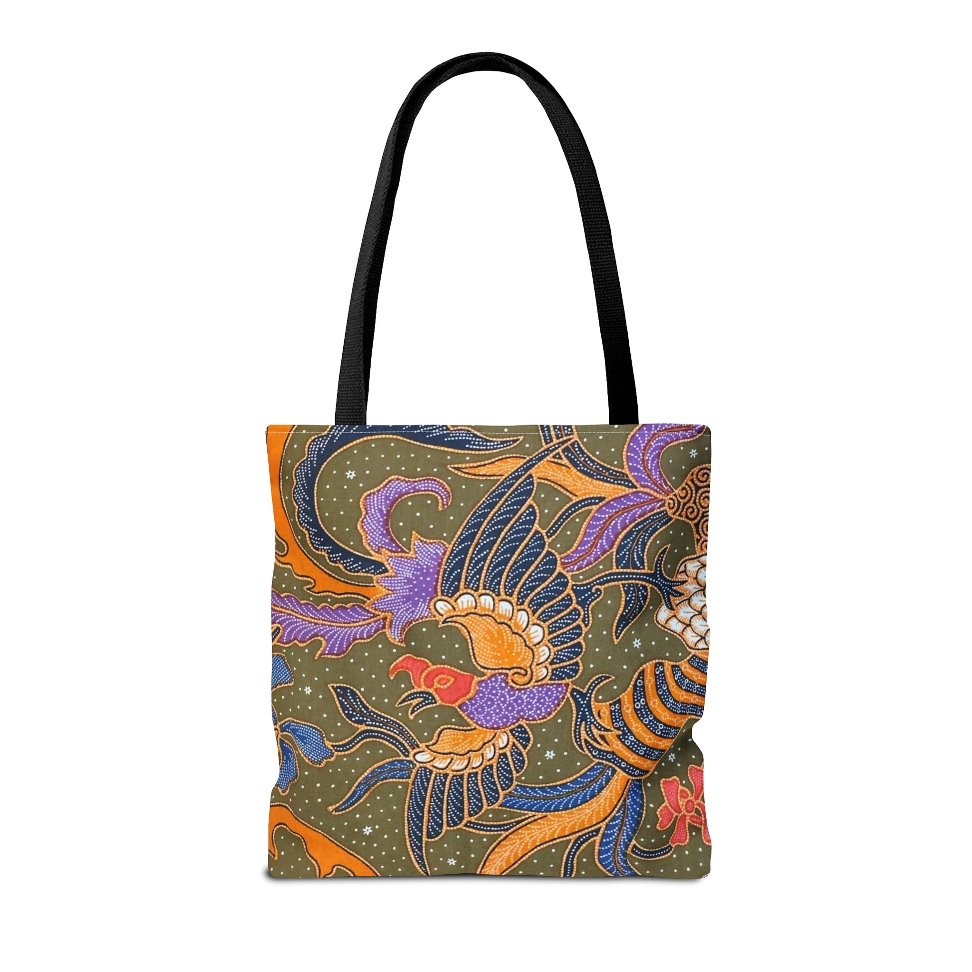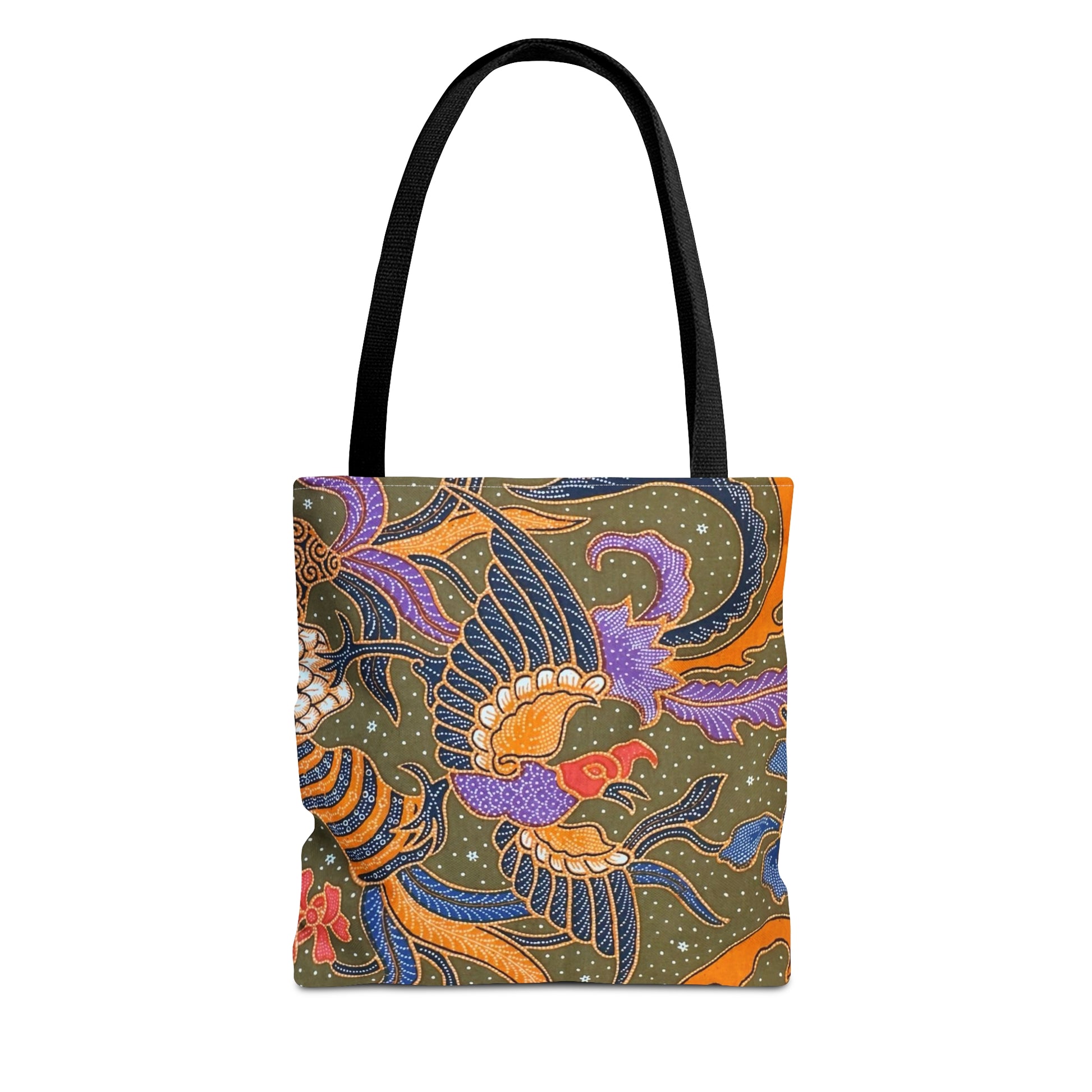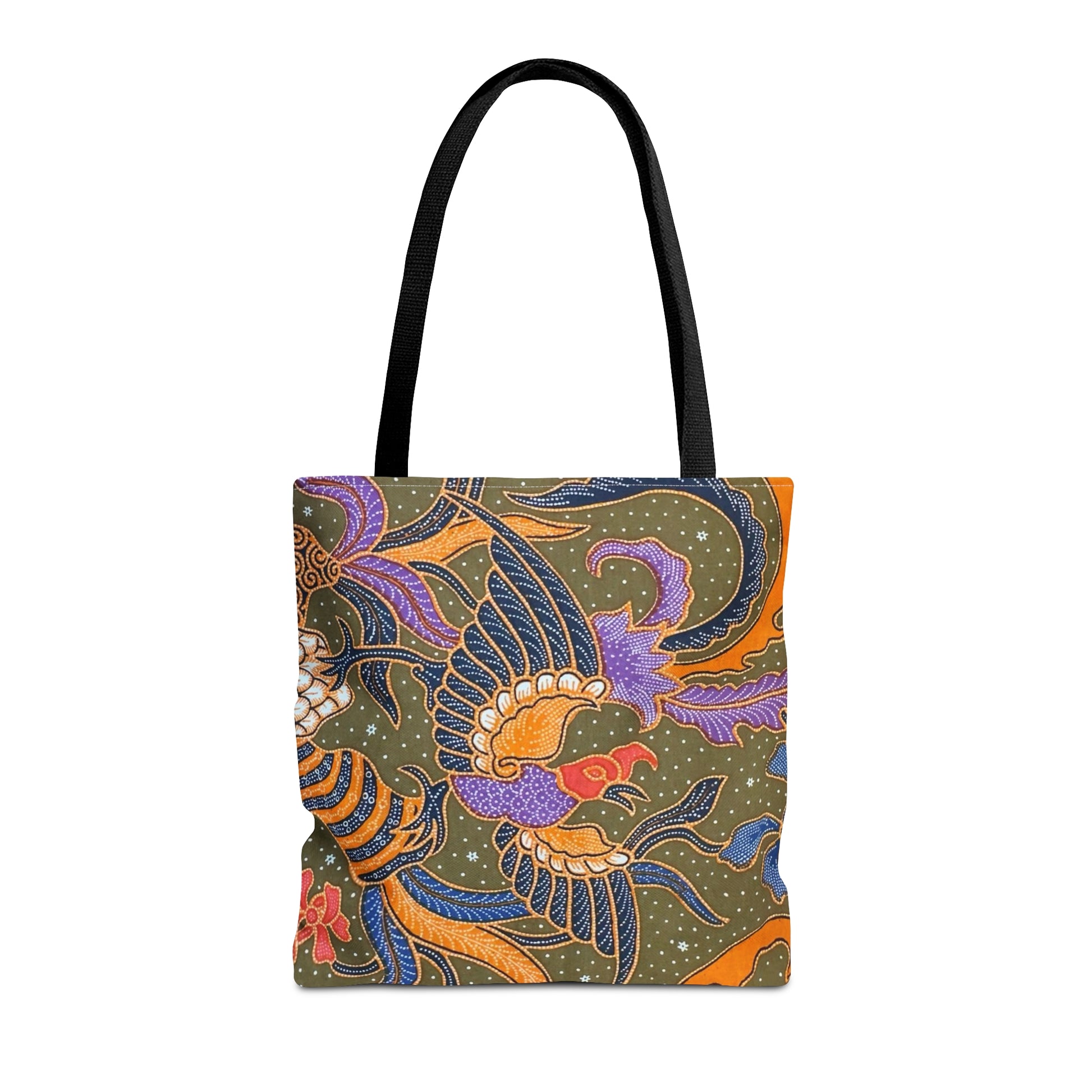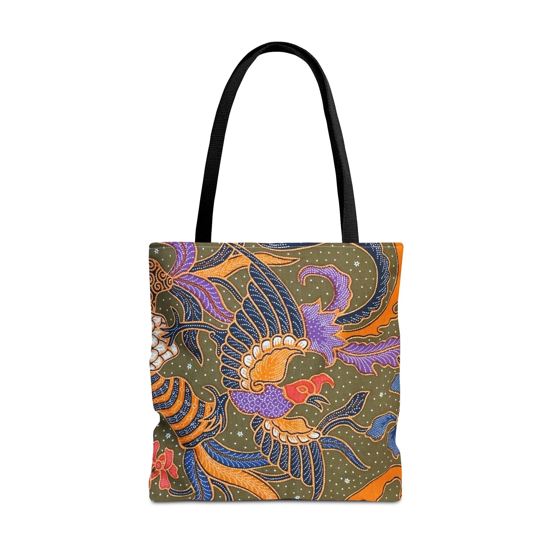 This beautiful batik print tote comes in 3 sizes and it's made of 100% polyester, a medium-weight fabric (6.49 oz/yd² (200 g/m²) that is highly durable and perfect for everyday use. Note: this is printed batik.