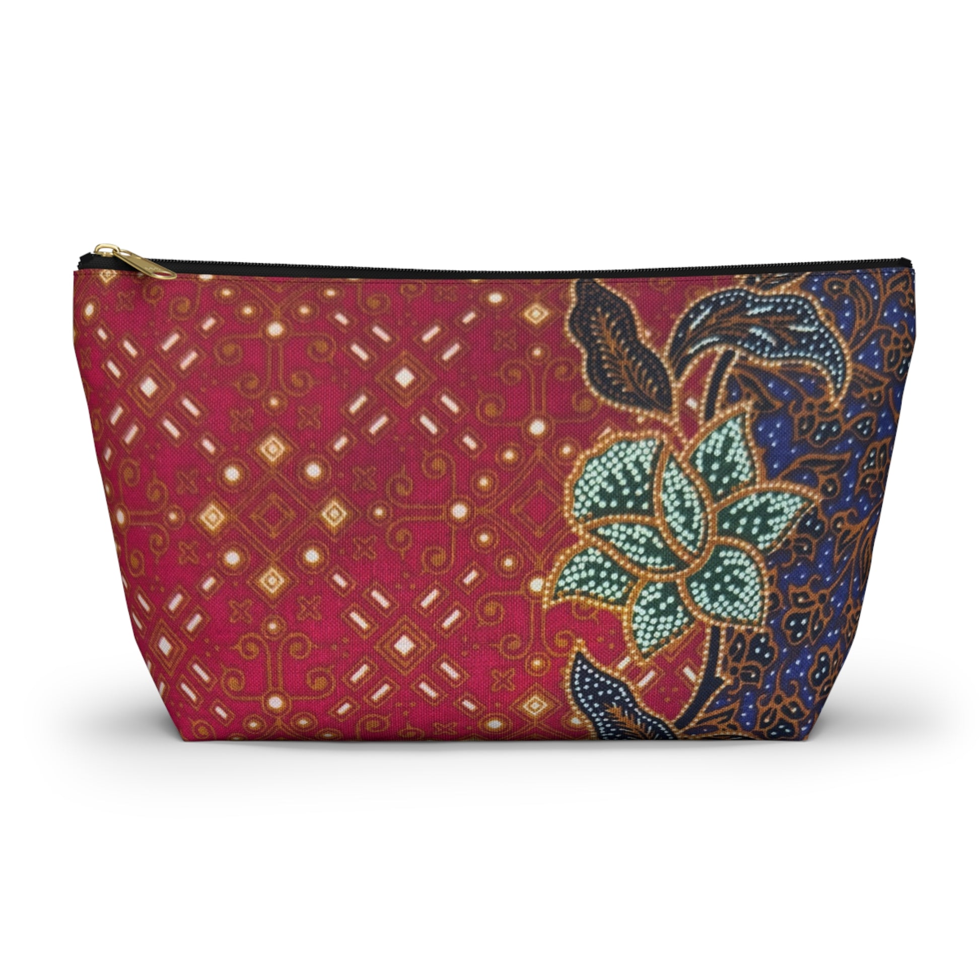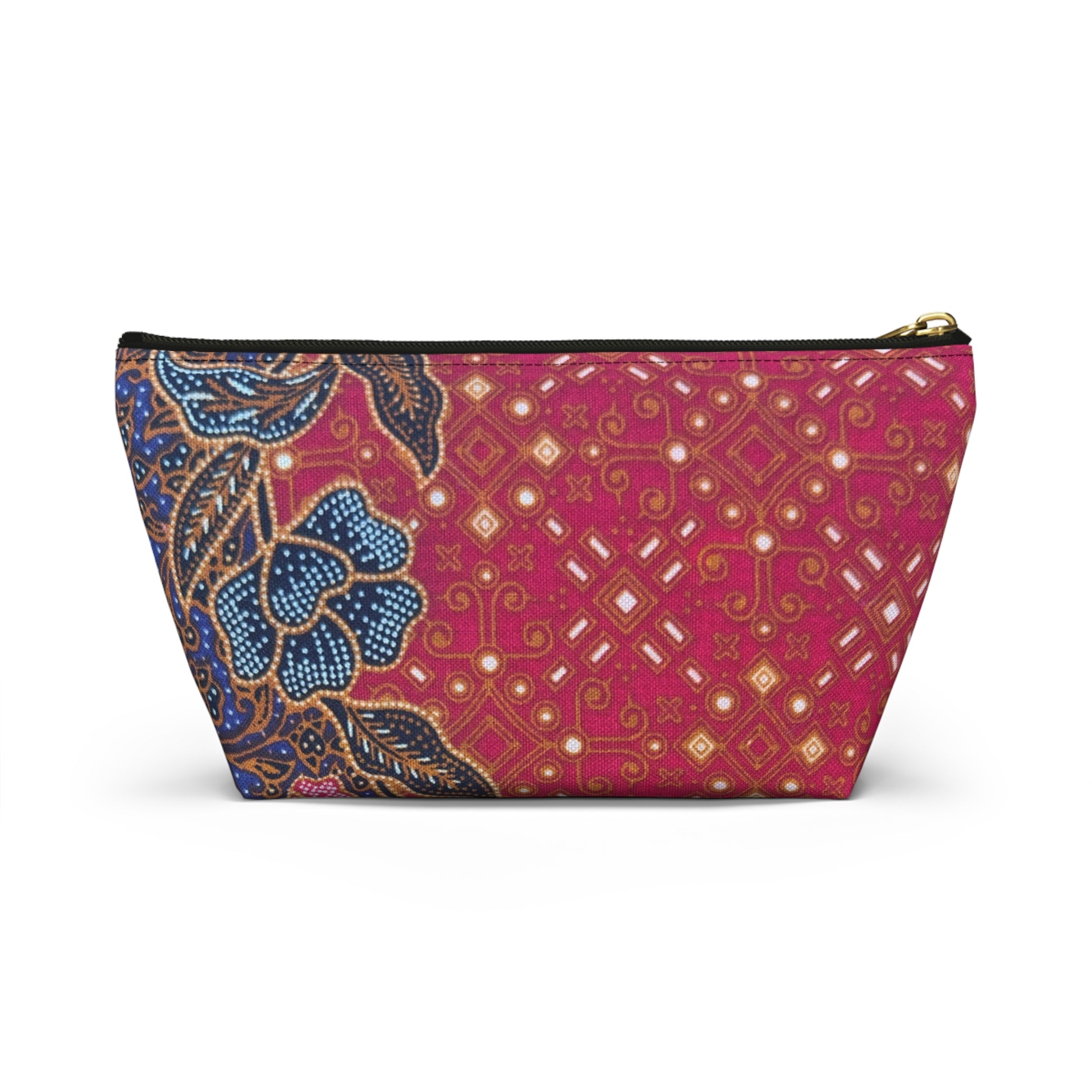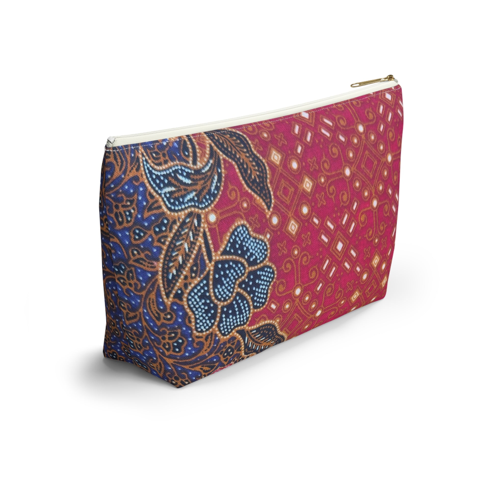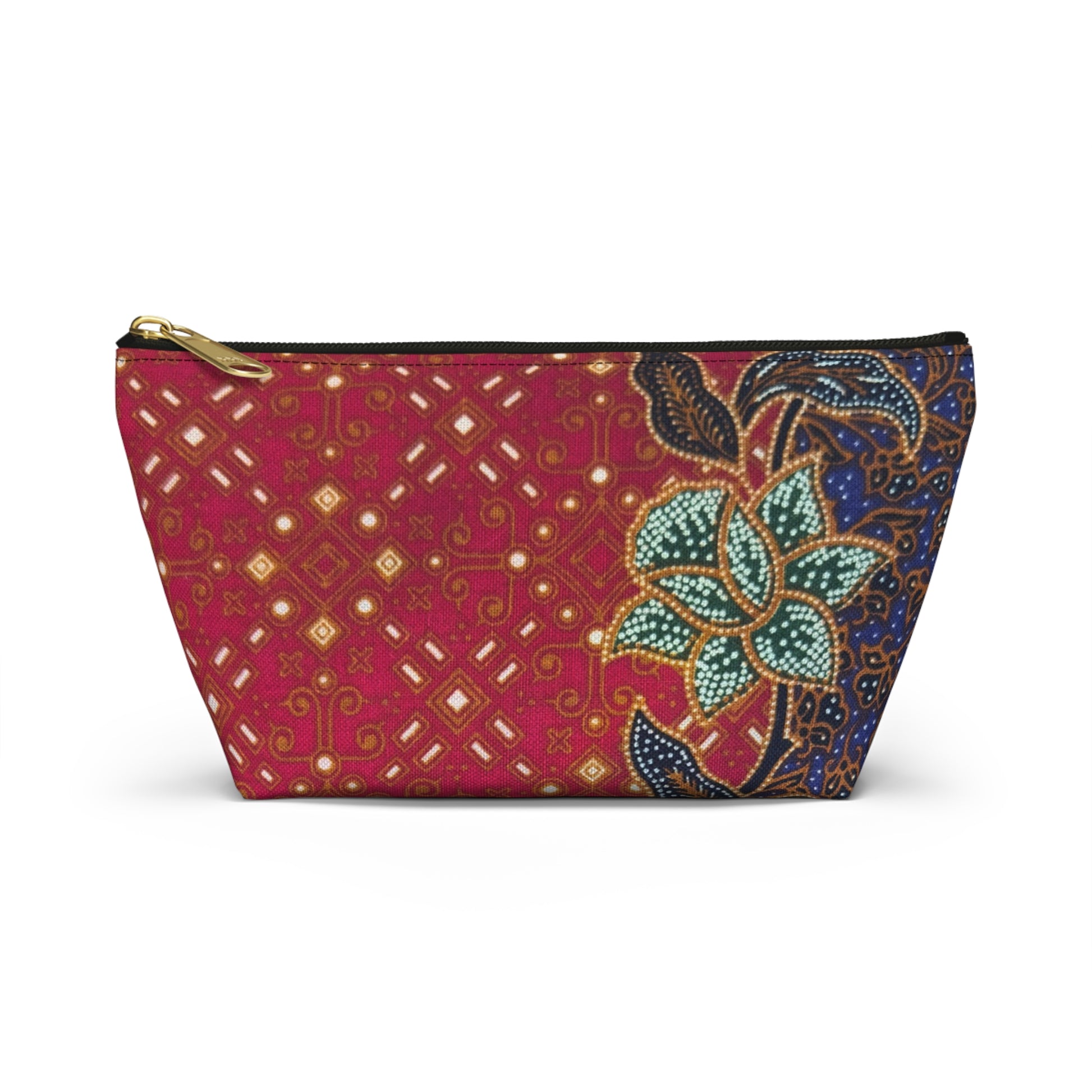Cosmetic travel bag can be used for pretty much anything. They also make excellent pencil cases. They are constructed from 100% polyester with a zipper closure. Comes with a white or black zipper. Note: this is printed batik.