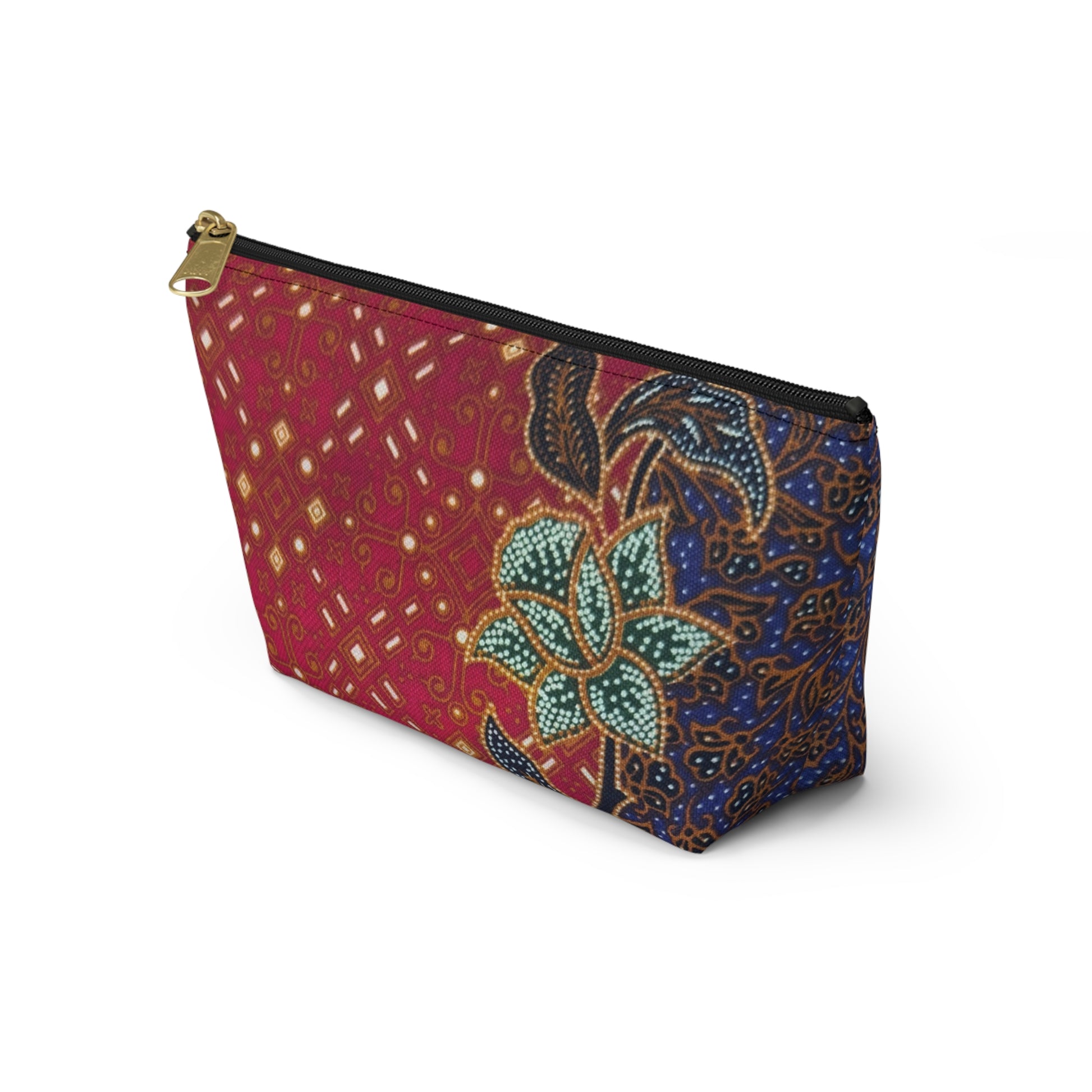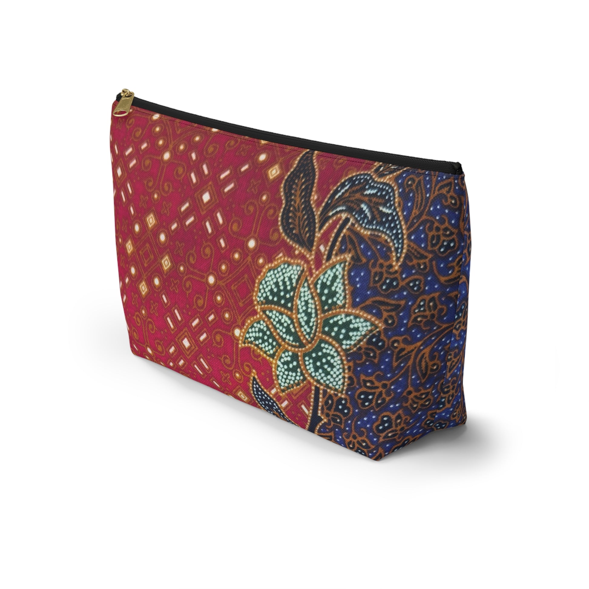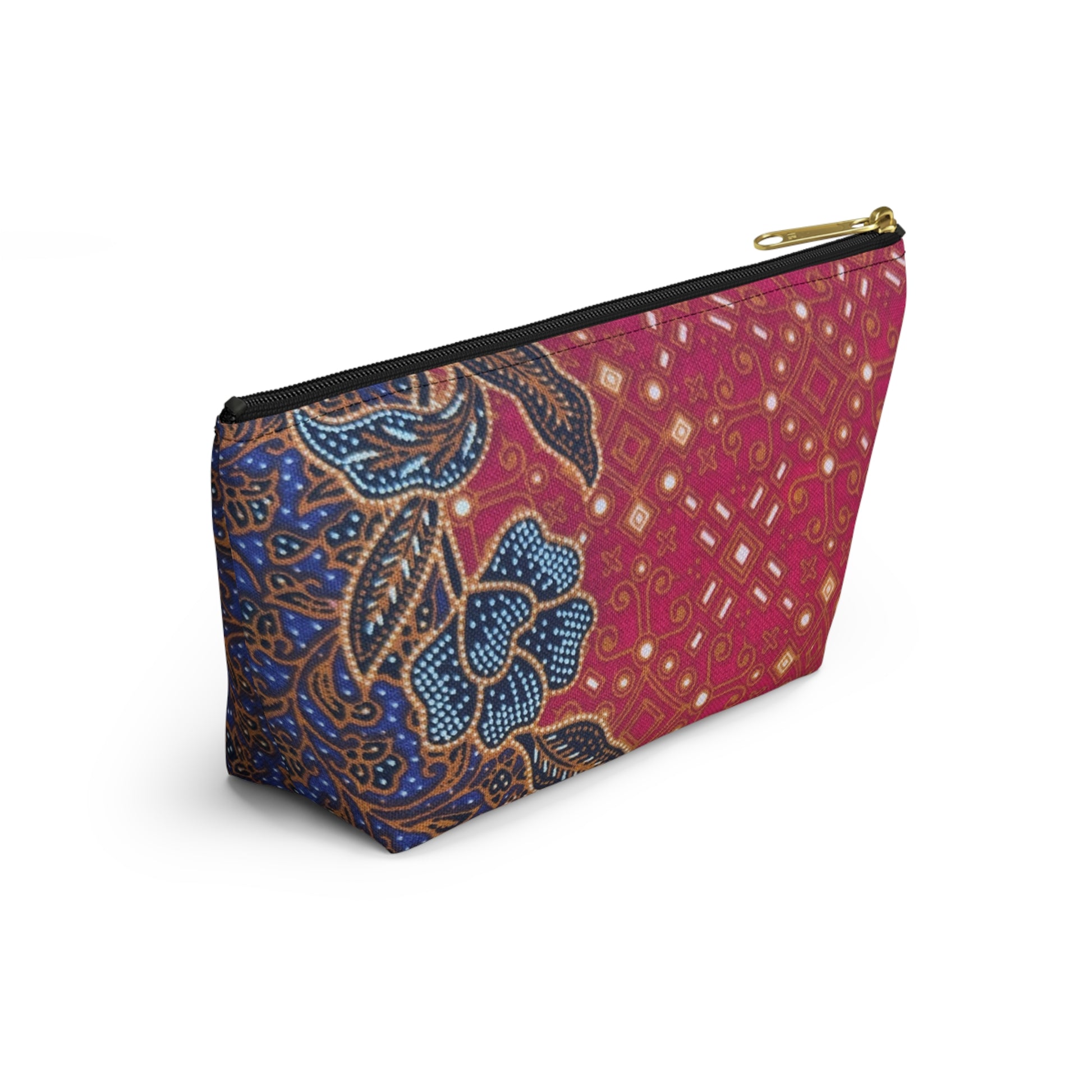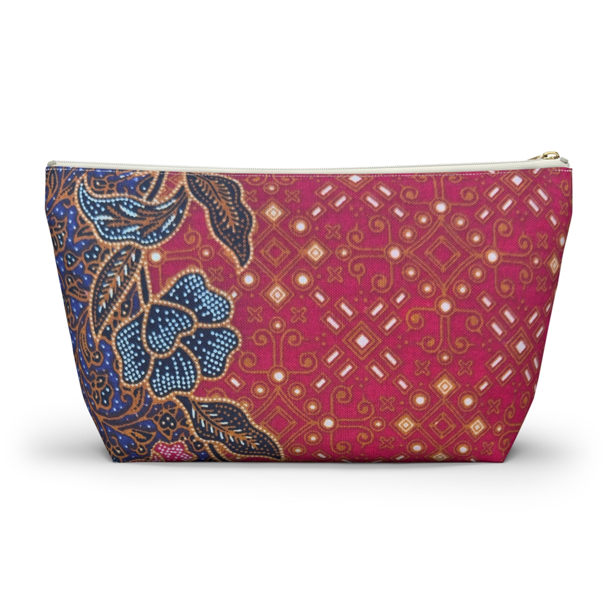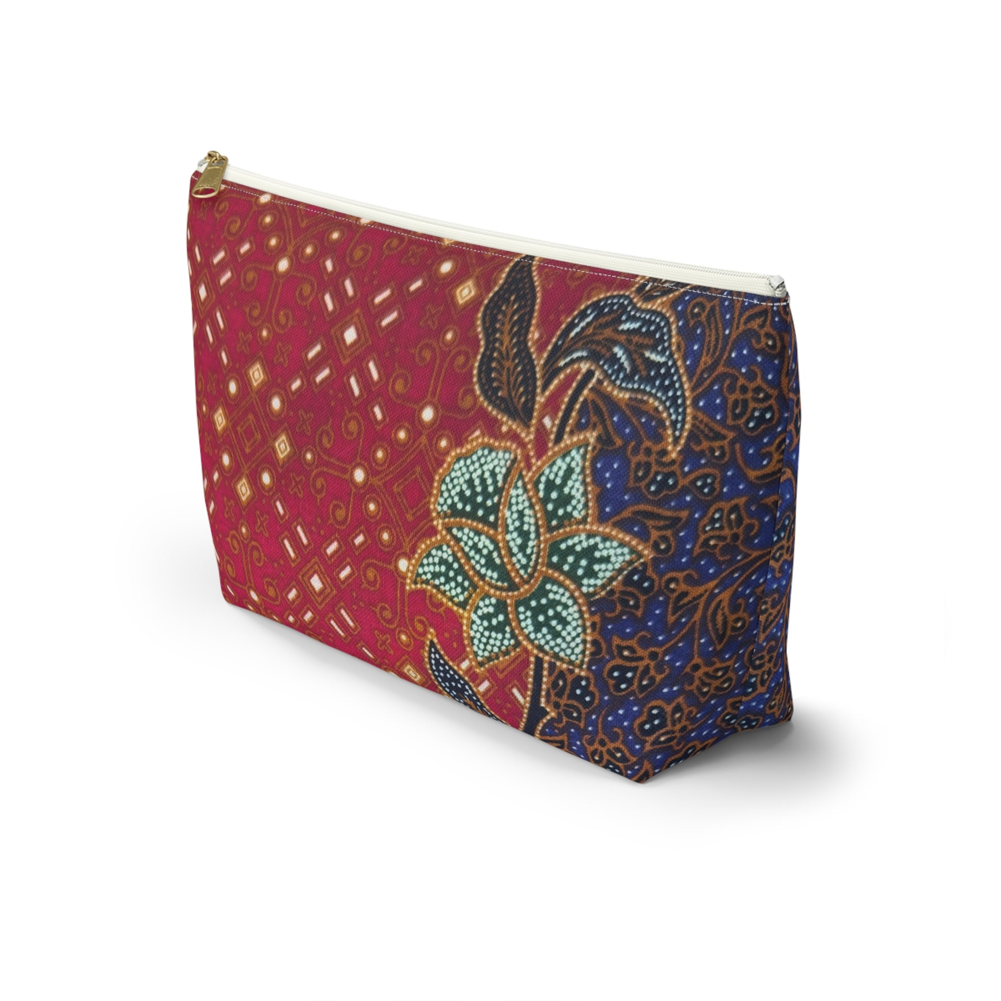Cosmetic travel bag can be used for pretty much anything. They also make excellent pencil cases. They are constructed from 100% polyester with a zipper closure. Comes with a white or black zipper. Note: this is printed batik.