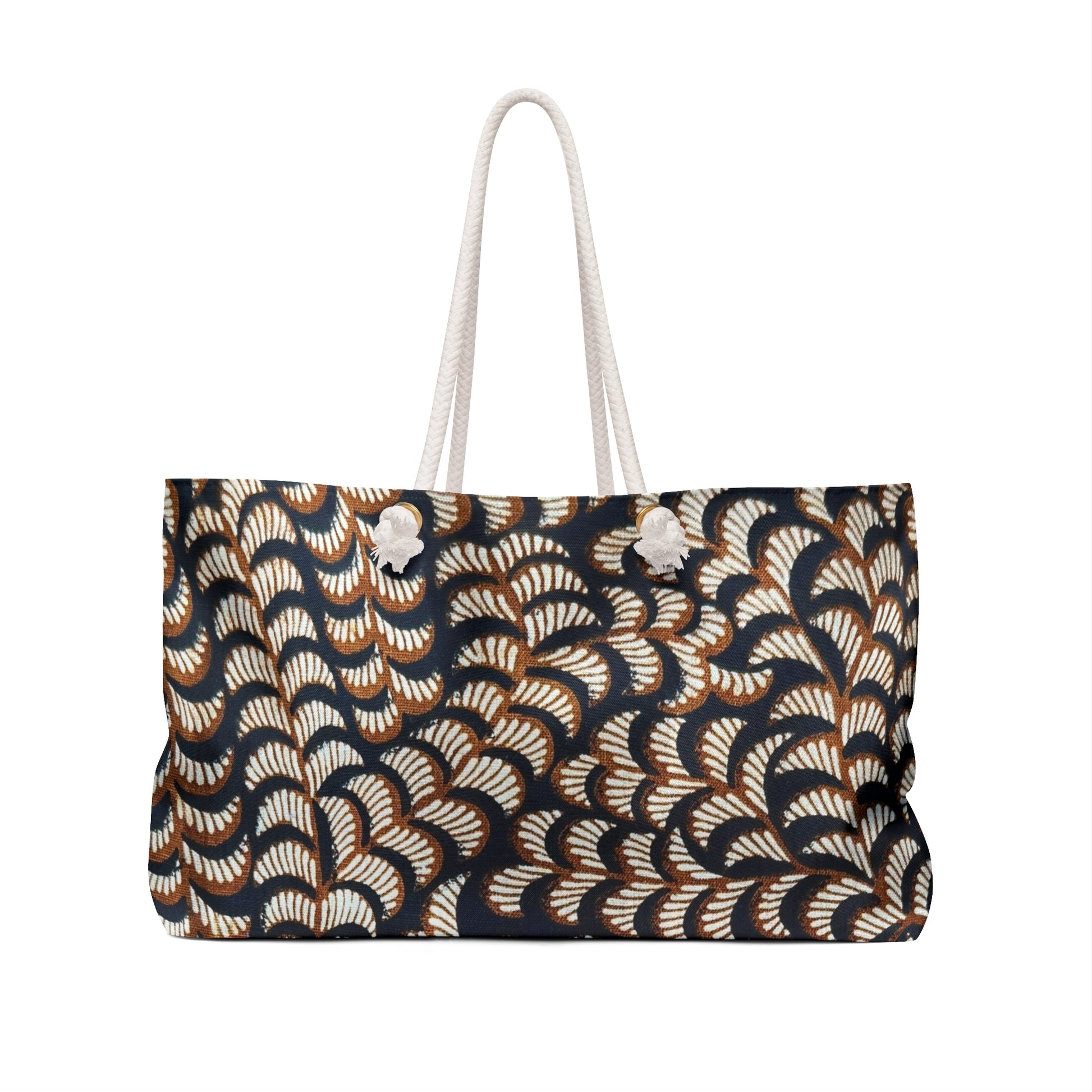 Our oversized Weekender Tote is perfect for your weekend at the beach or in town. The wide-mouthed, durable bag holds a generous amount of personal items and is easily held by its thick rope handles. Size: 24" x 13". 100% Spun Polyester. Note: This is PRINTED Batik.